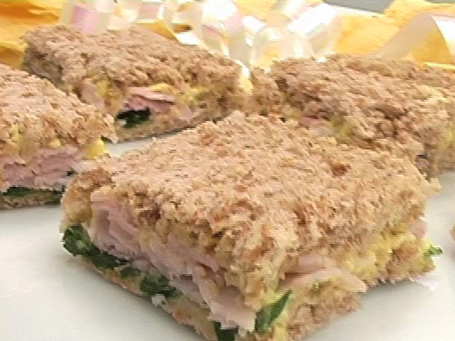 Простой сендвич на каждый день.Состав:цельнозерновой хлеб — 3 куска;горчица — 50 гр;масло — 50 гр;ветчина — 5 кусочков;несколько веточек рукколы, перец — по вкусу.