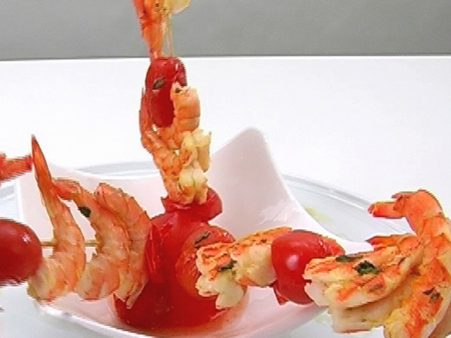 Замечательное блюдо для настоящих ценителей креветок.Состав:вареные креветки — 18 штук;карри — 1 чайная ложка;сок одного лимона;черри — 9 штук;петрушка — 2 столовых ложки;соль, нерафинированное оливковое масло — по вкусу.