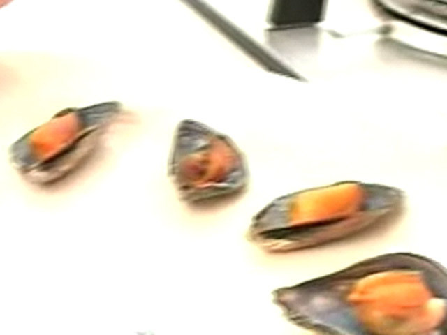 Маленькое удовольствие из мидий и овощей.Состав:мидии — 11 штук;перцы — 2 штуки;лук — 1 штука;оливковое масло, уксус, соль.