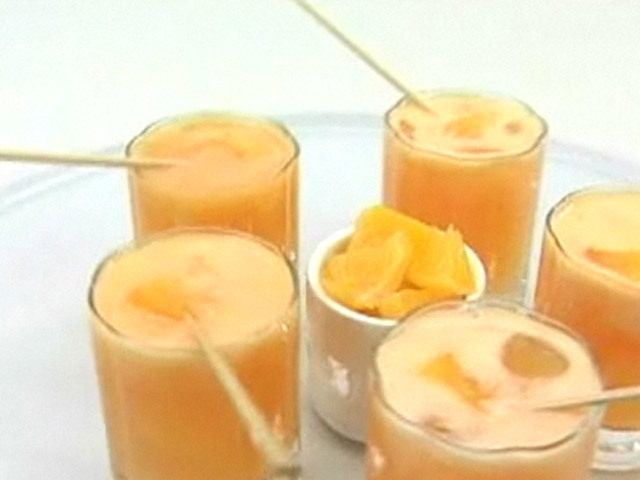 Освежающий безалкогольный коктейль из цитруовых.Состав:апельсины — 2 штуки;мандарины — 2 штуки;грейпфрут — 1/2 штуки;лимон — 1/2 штуки;мед — 2 столовых ложки;газированная вода, лед.
